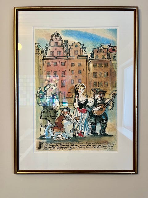 Inramade litografier.