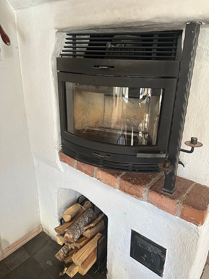 Insatskamin med glasluckor
