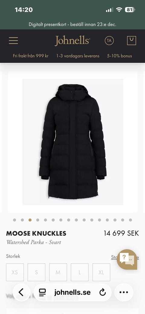 5 000 krMoose Knuckles jackaStl. XLVästra Frölunda13.12.25Gratis frakt•Köp nuLastbil i rörelseKan skickasLägg till i favoriter.