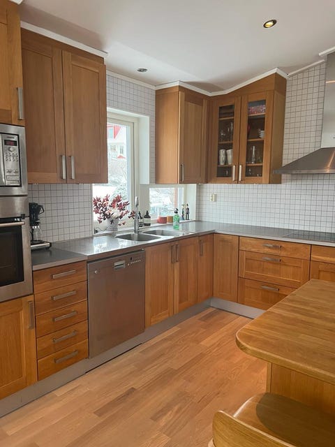 Kvänumkök med träskåp och köksö