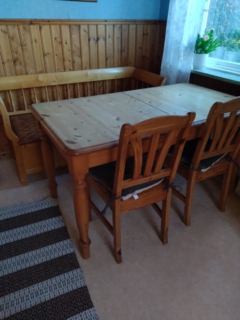 Köksbord i furu med 4 stolar