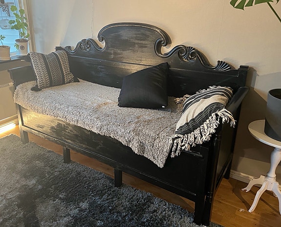 Svartmålad kökssoffa