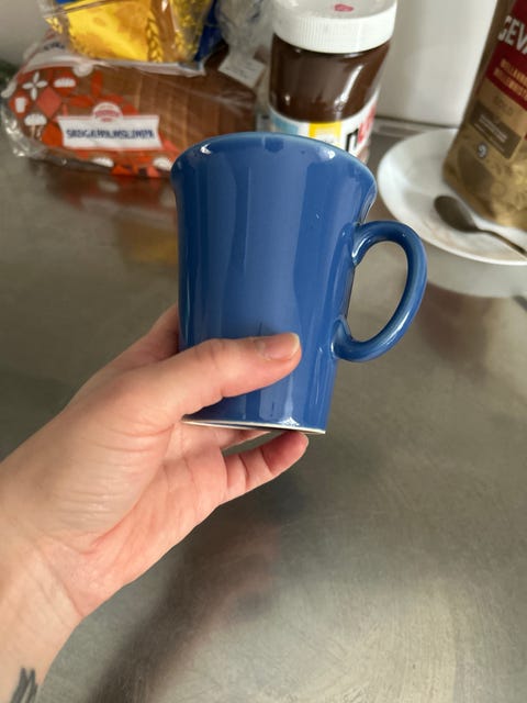 Blåa kaffe muggar