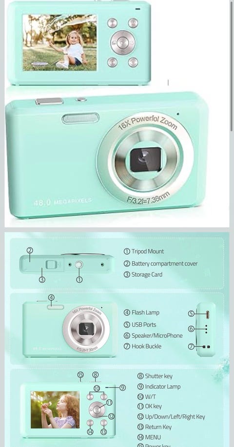 649 krDigitalkamera, FHD 1 080 P, kompakt kamera, 32 GB-kort, 48 MP-med 2,4-tum, grönGöteborg16 timKöp nuLastbil i rörelseKan skickasLägg till i favoriter.