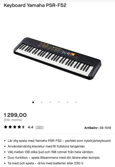 1 100 krKeyboard Yamaha PSR-F52 inkl stativ, pall & hörlurarSkegrie4 dagarKöp nuLastbil i rörelseKan skickasLägg till i favoriter.