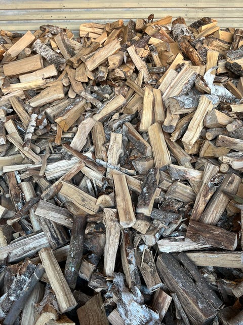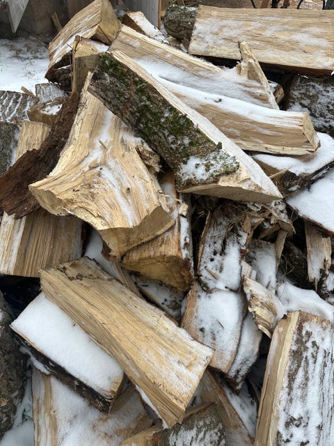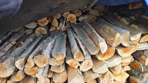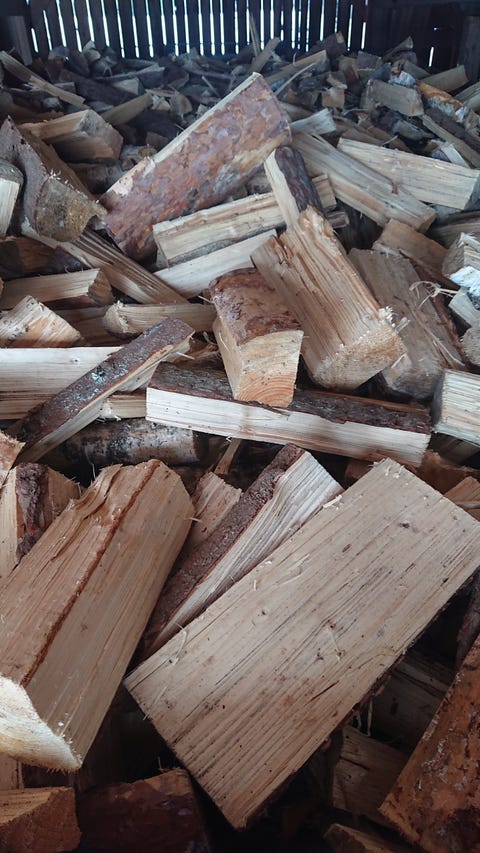 Björkved kapad och kluven