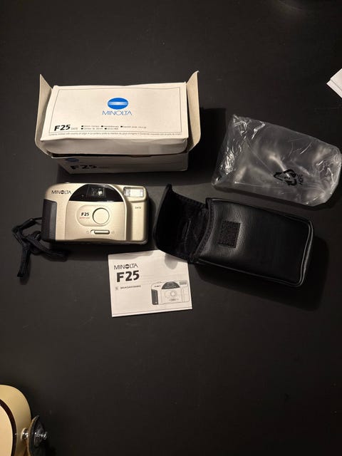 250 krMinolta F25 Kompaktkamera med fodral och bruksanvisning MinoltaEnskede22.12.25Lägg till i favoriter.