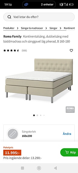 Kontinentalsäng 180x200