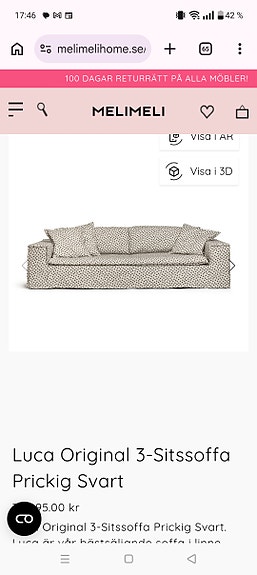 Melimeli Luca 3-sits soffa i linnetyg