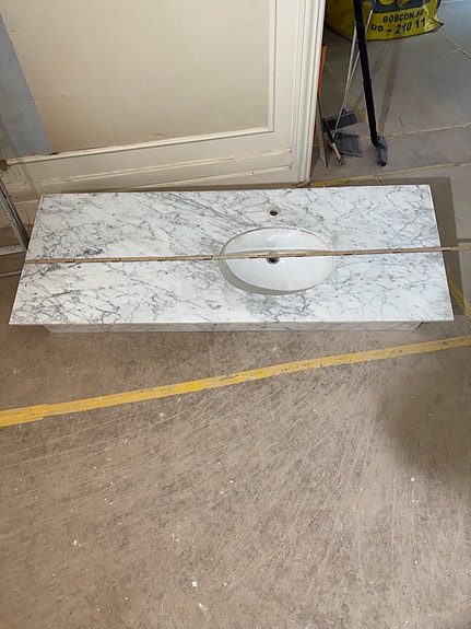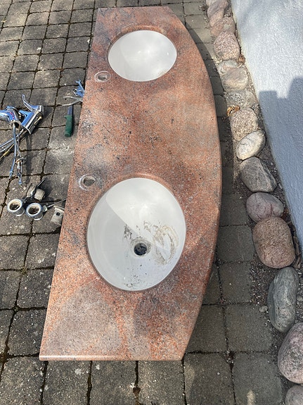 Dubbeltvättställ bänkskiva med två handfat marmor