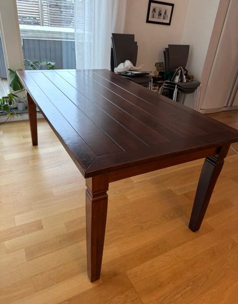 SäljesMörkt matbord med fyrkantig bordsskiva och svart stativ med tillhörande stol.Arboga15.12.25Lägg till i favoriter.