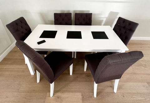 1 500 krMatgrupp 208 inkl iläggsskiva 45 cm. Sex stolar varav två är karmstolar.Umeå1 dagLägg till i favoriter.
