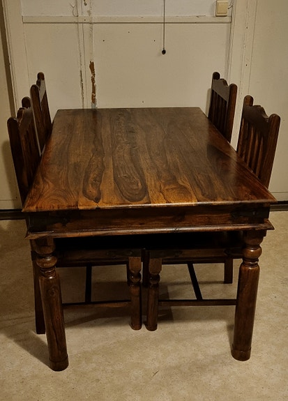 3 500 krTidlös matgrupp: bord och 6st stolar i massivt träVästra Frölunda19 timLägg till i favoriter.