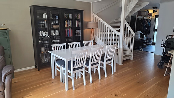 Matgrupp med bord och 6 stolar