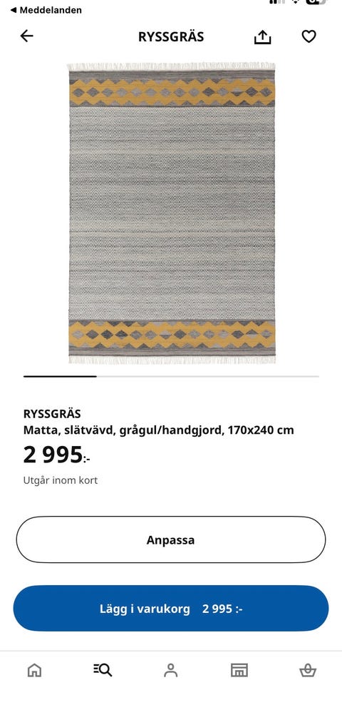 1 200 krIKEA - Matta 170 x 240 IKEABorlänge3 janKöp nuLastbil i rörelseKan skickasLägg till i favoriter.