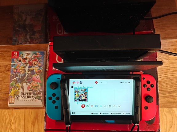 Nintendo Switch V2 + 2 extra Joy-Cons + 2 st spel + Sandisk utrymmeskort 128 gb