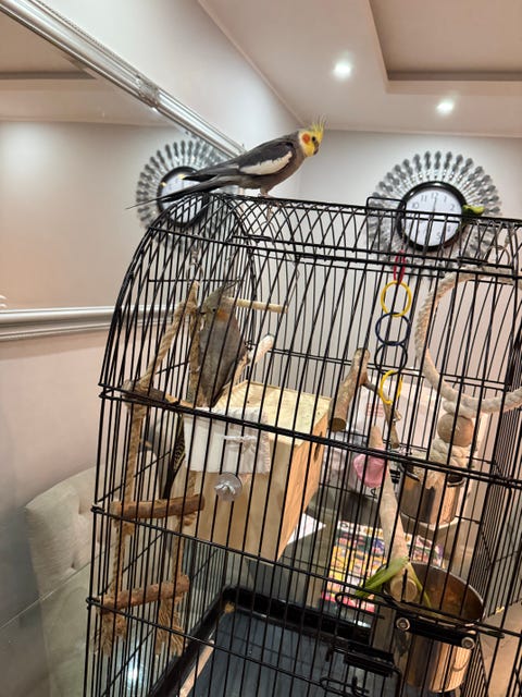 Nymfparakit med stor bur + tillbehör