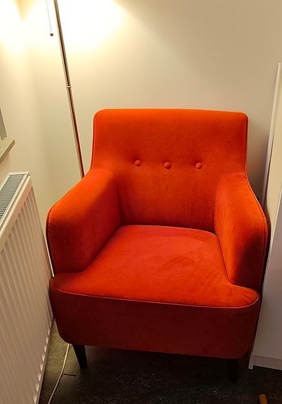 Fåtölj som ny – orange sammet