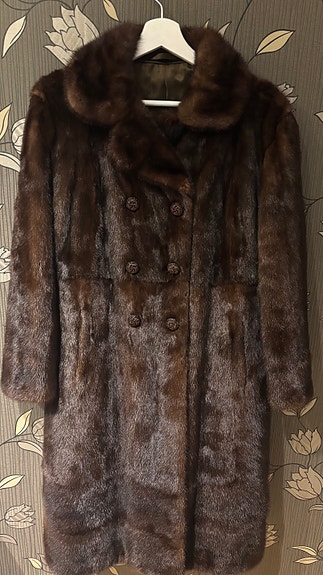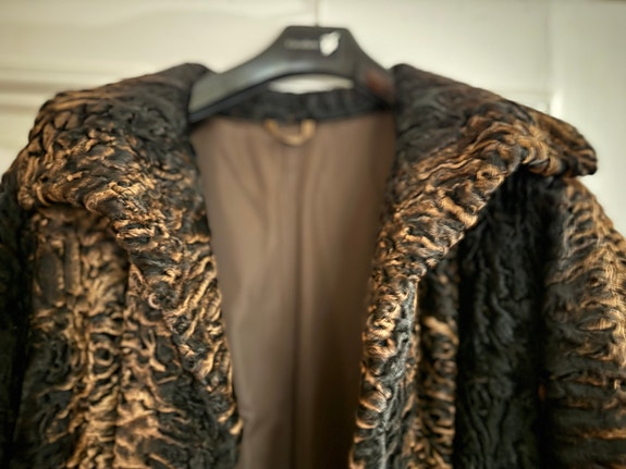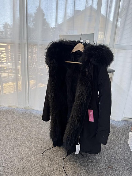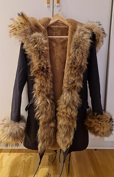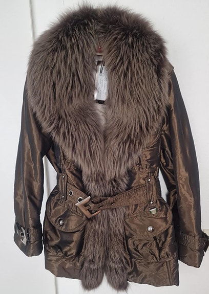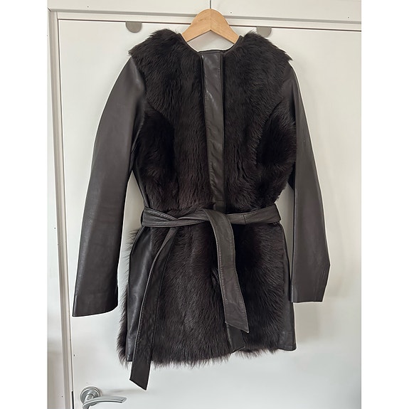 Tiger of Sweden - brunsvart jacka / kappa i 100% äkta päls & läder - storlek 38