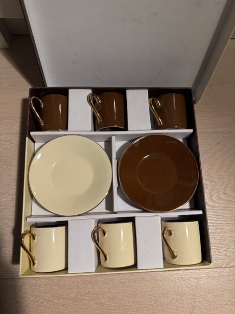 1 000 krH&M Home Kaffekoppar och fat i porslin med guld- och svartmönster H&M HomeGöteborg17.12.25Köp nuLastbil i rörelseKan skickasLägg till i favoriter.