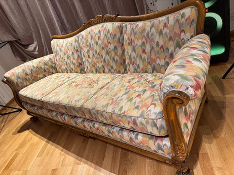 4 700 krAntik soffa ca 1910 – massivt trä & handskuren dekor (omklädsel/projekt)Vega12 timLägg till i favoriter.