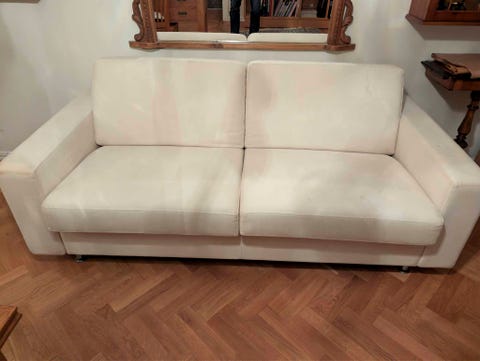 Vit bäddsoffa i tyg 140 cm bra, fast bädd