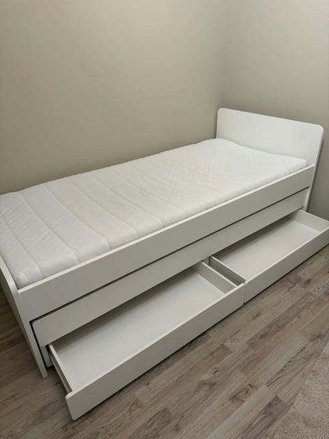 IKEA säng med förvaring vit med svarta lådor