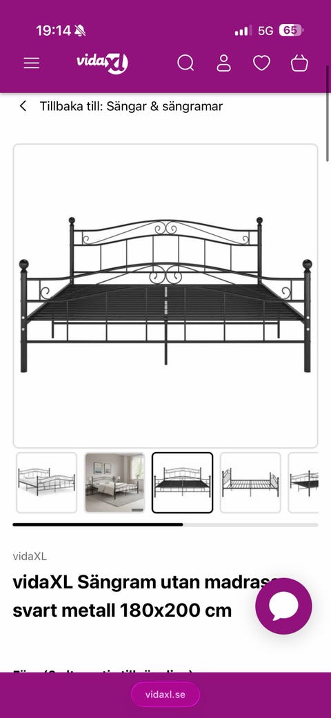 Sängram i metall 180cm med 2 sängbord