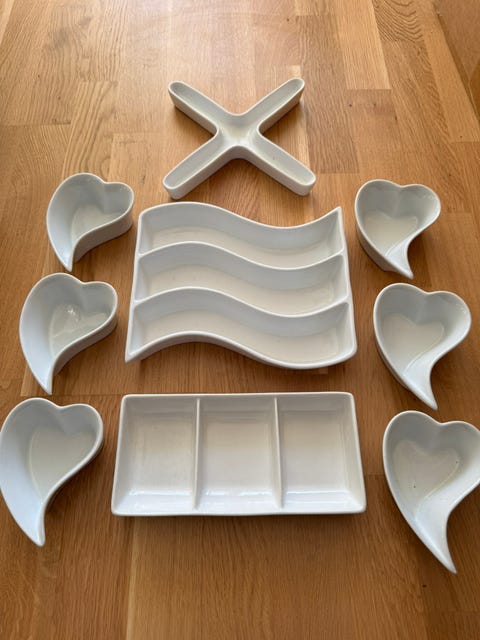 500 krVinga Albe, fina serveringsfat, ett stort fat och flera små skålar på träbrickaUppsala3 janKöp nuLastbil i rörelseKan skickasLägg till i favoriter.
