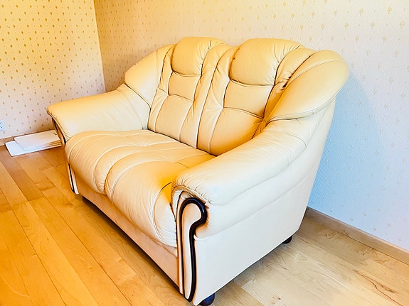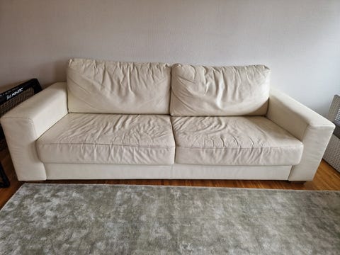 Vit skinnsoffa bortskänkes