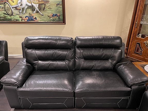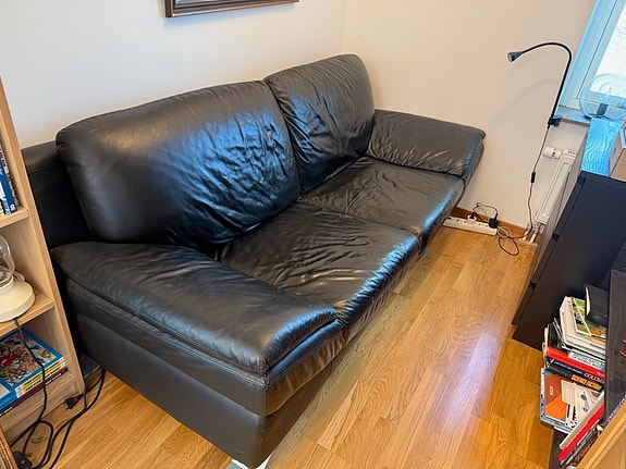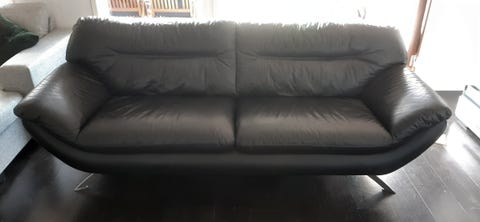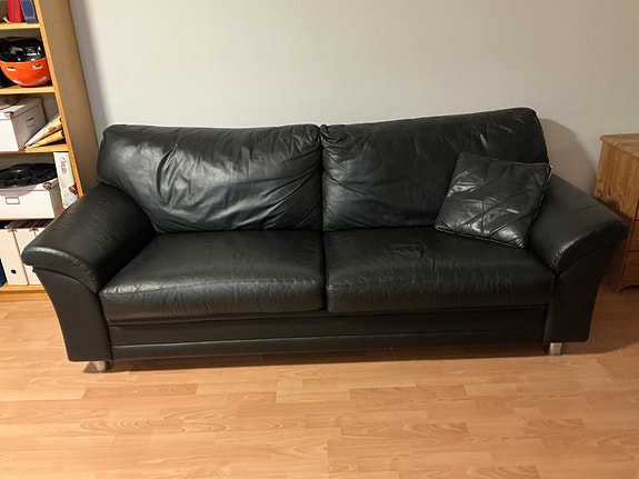 Svart skinnsoffa, 3-sits