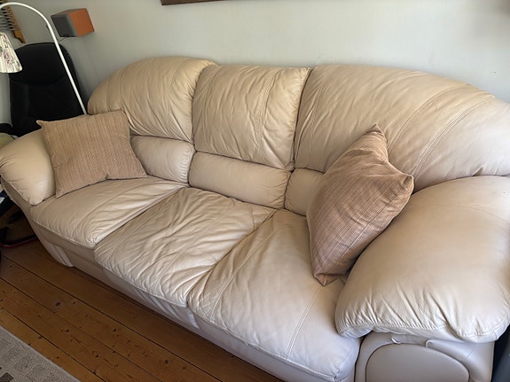 3 sitsig skinnsoffa