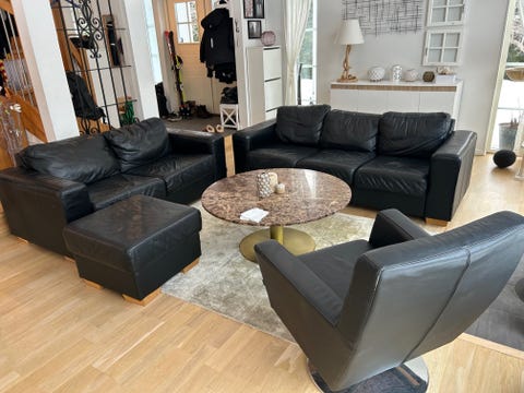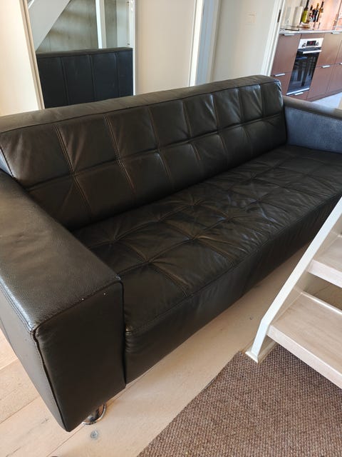 Svart lädersoffa 2-3-sits