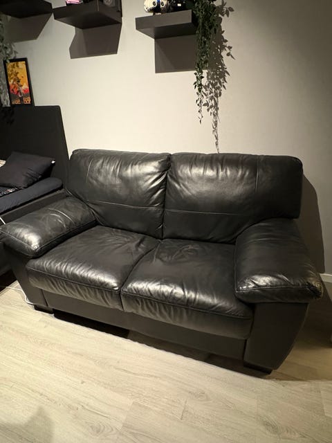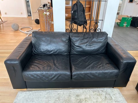 Svart lädersoffa 2-sits