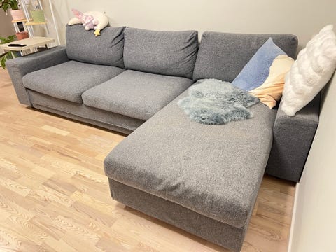 mörkblå soffa