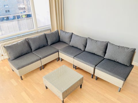 Soffa med divan grå tyg