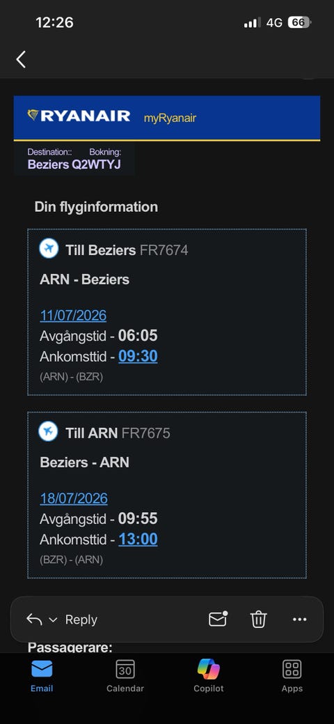 3 700 krFlygbiljett Stockholm ARN – Beziers, Frankrike tur och retur 11–18 juli 2026Saltsjö-Duvnäs5 timLägg till i favoriter.Öppna annons