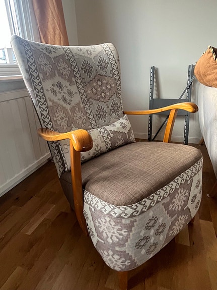 600 krFåtölj med hög rygg i grönt tyg, 40-tal, 50-tal 60-tal retro vintageÖrebro7 marLägg till i favoriter.