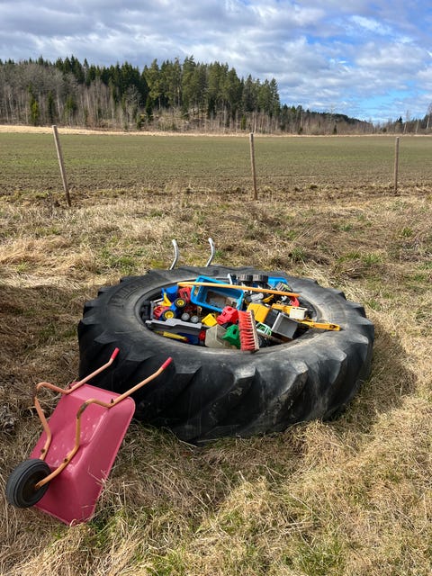Stort traktordäck till sandlåda