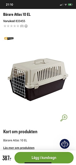 400 krFerplast Atlas 20 EL transportbur för katt eller liten hundSaltsjö-Boo11 timLägg till i favoriter.
