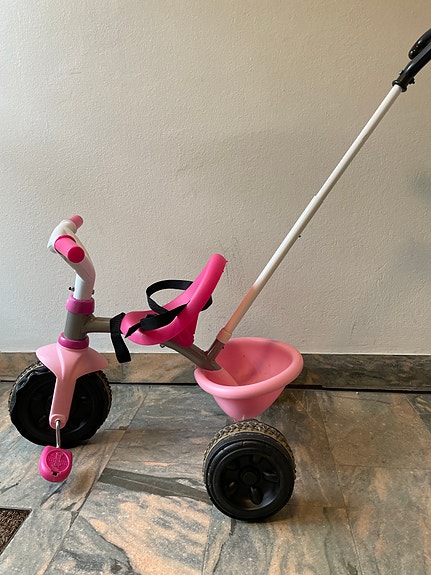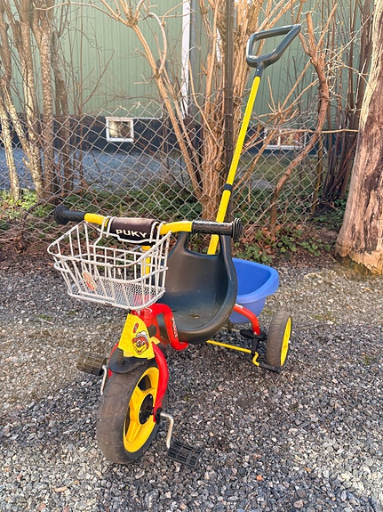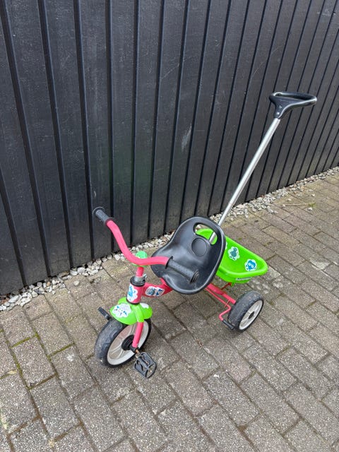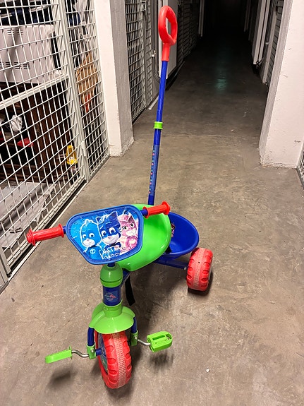 Pyjamashjältarna trehjuling med skjutstång blå grön röd