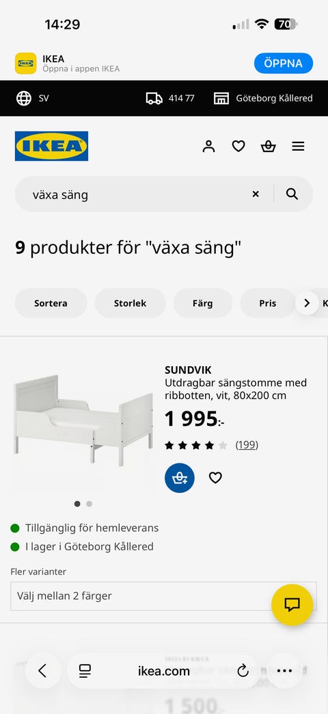 600 krIKEA Sundvik Utdragbar säng Vit inkl madrass 80x200 cm IKEAVästra Frölunda6 dagarLägg till i favoriter.