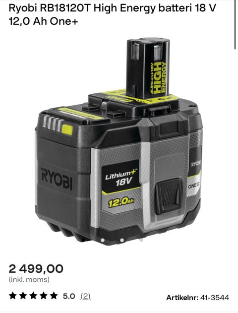 2 000 krRyobi RB18120T Batteri 12,0 Ah 18v ONE+ helt ny i paket.Skarpnäck2 dagarGratis frakt•Köp nuLastbil i rörelseKan skickasLägg till i favoriter.Öppna annons