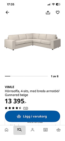 3 300 krIKEA VIMLE 3-sitssoffa (Gunnared beige) – Inköpt aug 2023 IKEAHanden7 dagarLägg till i favoriter.Öppna annons