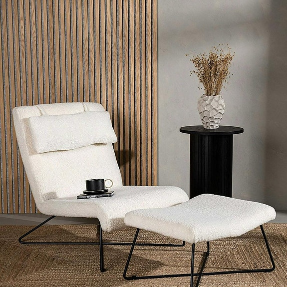 Fåtölj med fotpall vit läder