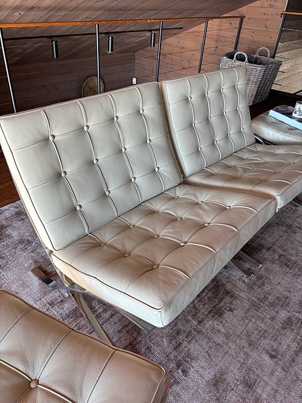 Fåtölj med fotpall tvåsitsig.