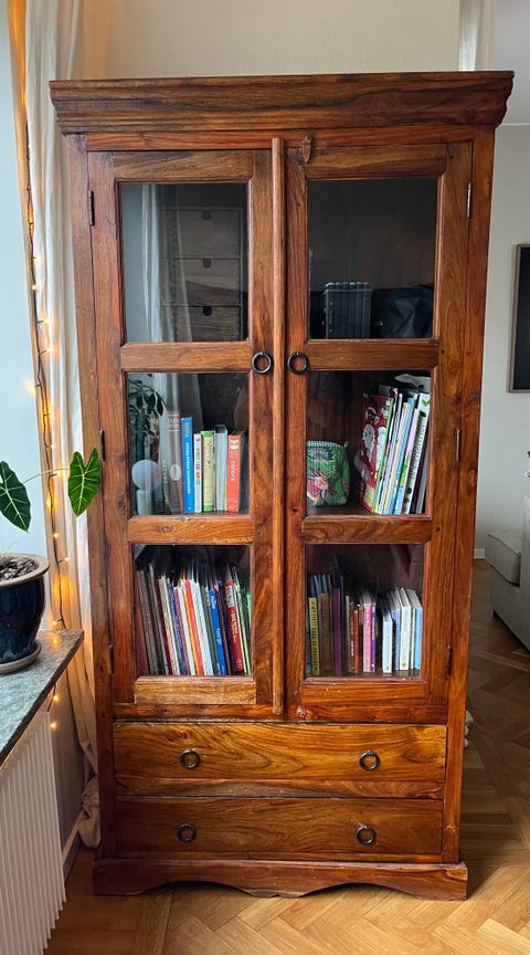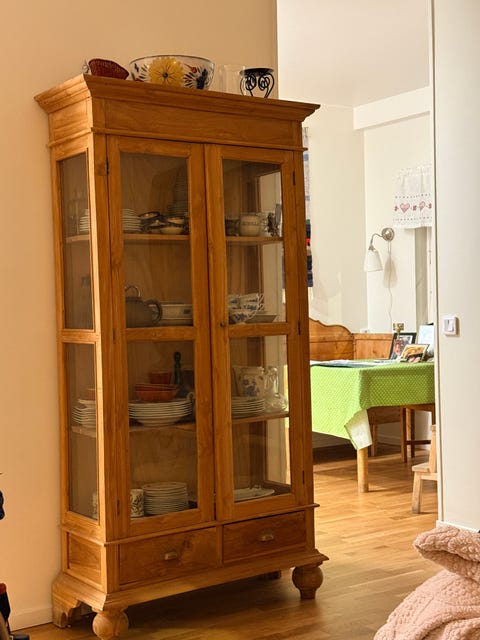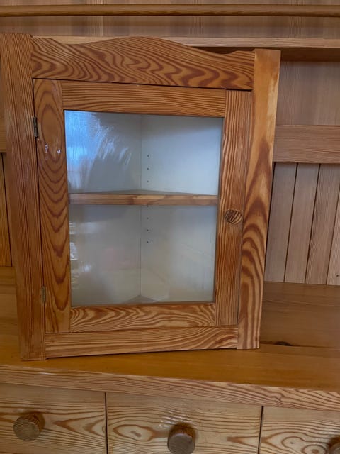 Äldre vitrinskåp i furu