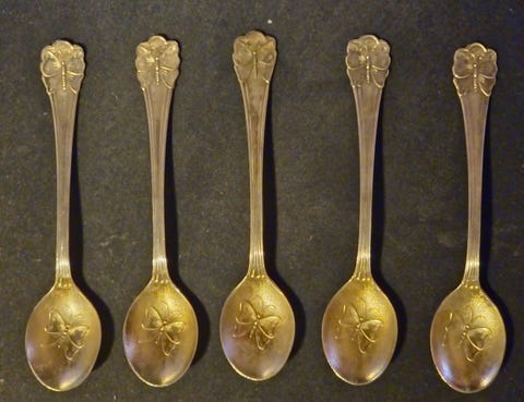 250 kr5 st vackra kaffeskedar i nysilver – Fjärilsdekor (C.G. Hallberg) 1900-1920talMunkfors54 minKöp nuLastbil i rörelseKan skickasLägg till i favoriter.