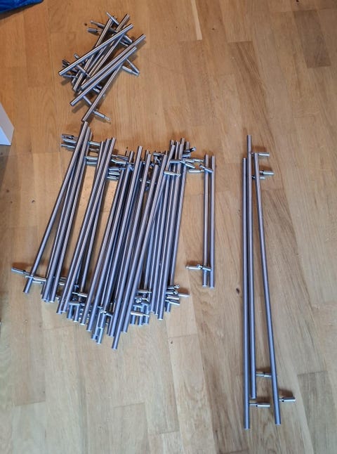 Genom att köpa delar av köksinredningen begagnad, som köksskåpsluckor, skiljeväggar eller bänkskivor, kan du spara pengar. Fundera också på om en totalrenovering verkligen behövs eller om det räcker med att byta ut köksluckorna på dina befintliga skåp. När du överväger att köpa begagnad köksinredning eller köksstommar - tänk på att kontrollera mått, material och skicket.