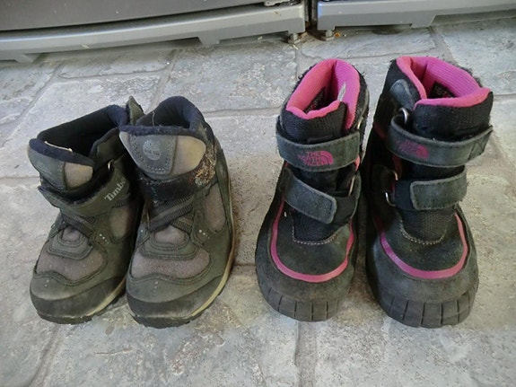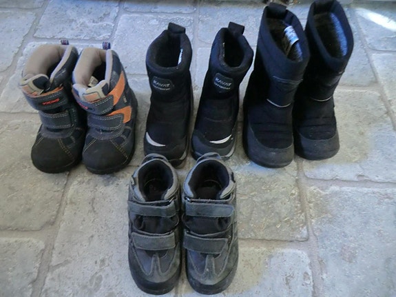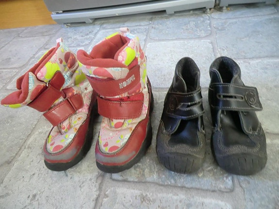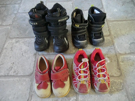Kvalitetsskor kan vara ganska dyra. Genom att köpa begagnade kan du till exempel få vinterstövlar till ett lägre pris, och kanske till och med ett extra par för de morgnar då stövlarna inte hunnit torka efter lek i snön. Mellansäsongsskor, barnsneakers och gummistövlar blir snabbt för små när barnen växer. Om du planerar att köpa begagnade barnskor - kontrollera skornas skick i annonsen och kolla storlekstabellen på tillverkarens hemsida.